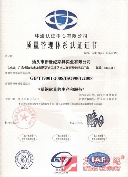 新世纪家具实业有限公司成立于2001年初,是一家从事专业开发和生产办公、会议、教学、宴会、剧院、候机(车)室、体育场馆、餐厅等多功能座椅,并集产品设计、生产、销售于一体的企业。在职员工600余人,占地68亩,综合厂房面积60,000平方米。工厂由大型注(吹)塑基地、五金生产基地、软包装生产基地组成,拥有资深专业技术和丰富管理经验的团队,长期为客户提供优质、高效的服务。 公司秉承“诚信为本,品质优先,从我做起,追求卓越”的经营理念,注重产品细节,勇于创新。多项产品获得国家专利,并于2004年通过了ISO9001:2000质量管理体系认证,拥有自营进出口经营权, 2008年为“北京奥运会”保质保量提供了20万套各款家具并获得“优秀供应商”殊荣。 新世纪公司的成长离不开广大客户的支持和厚爱,我们将注入更多的热情、更大的努力,与广大新...... [ 查看详情 ]